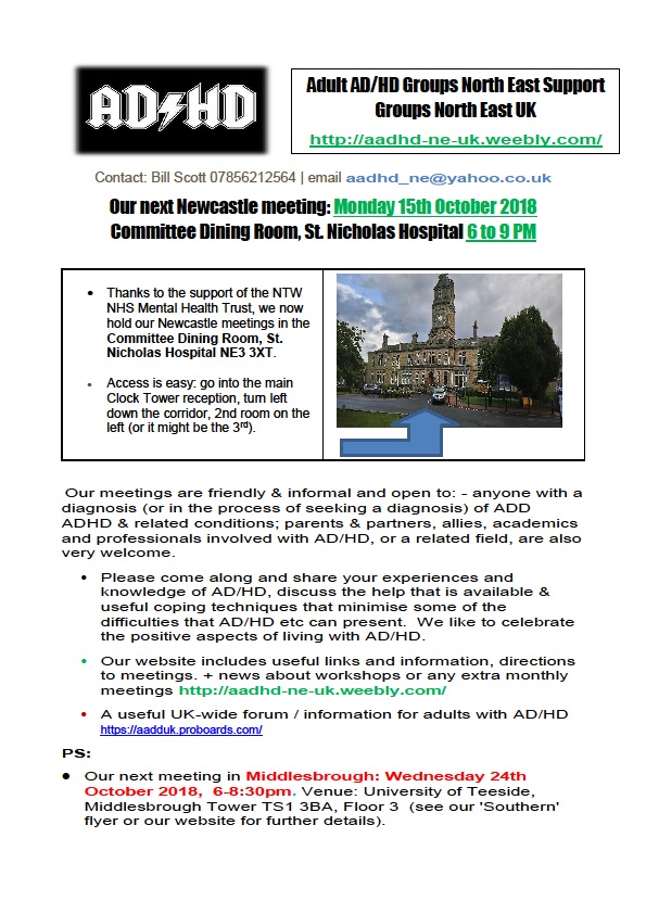 North East ADHD adult support group N_ Newcastle flyer Monday 15th October 2018[2305843009215970452]