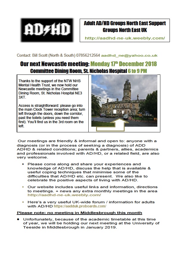 North East ADHD adult support group N_ Newcastle flyer Monday 17 DEC 2018[5217] Published December 8, 2018 at 595 × 856 in North East ADHD adult support group N_ Newcastle flyer Monday 17 DEC 2018[5217] ← Previous Next →